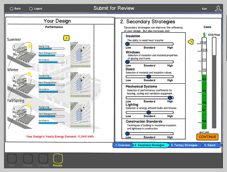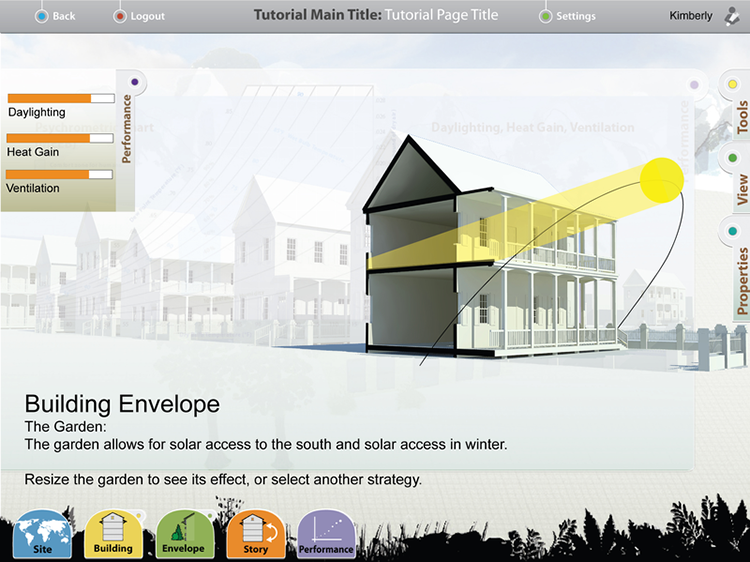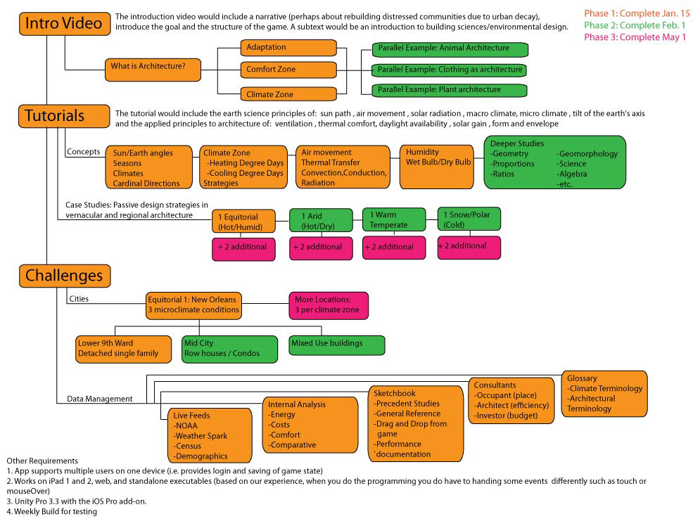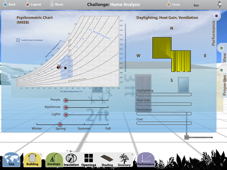 A game for the iPad that explores the relationship between design & energy use. It is structured around case studies to explain concepts and offers real time feedback based on design moves. The video game style interface uses an easy to understand psychrometric chart to track and provide feedback on: